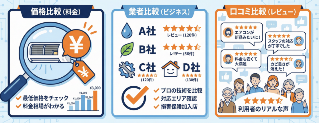満足度の高い依頼にしたいなら、「一番安いところ」よりも「うちのエアコンに合っていて、安心して頼みやすいところ」を探す方が近道です。